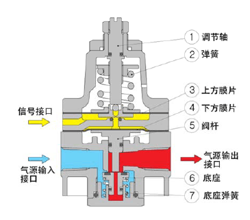 通过气控阀的工作原理,当气控阀的信号压力大于弹簧压力时,阀杆压住底座,此时进气口才会与出气口接通。
