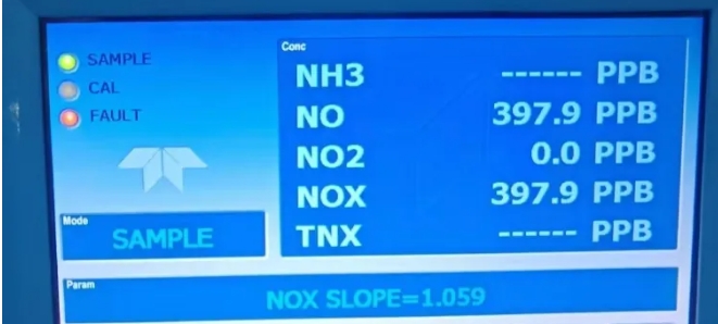NOx分析仪400ppb响应100ppb左右的故障排查