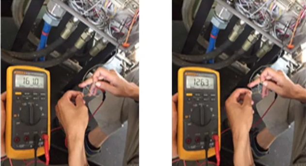 将热电阻导线从现场接线箱脱开,将万用表打到电阻档测量每支热电阻主线和两根副线之间的电阻发现当前使用的一组已损坏,而备用先也只有主线和一根副线电阻值稳定,故将温度改为二线制接法,并把去主控的线一并改为二线制。