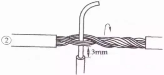 ②互相绞合2~3圈后扳直两线头。