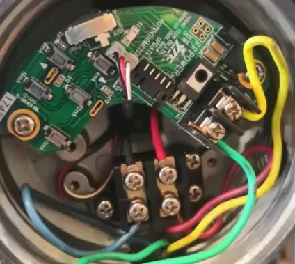 现场让工艺将此阀切出,泄尽余压,对此阀门进行检查,阀门外观完好,没有明显故障。后对其定位器进行检查,发现其防水雨布内有水珠出现,拆除防水雨布,打开定位器外壳未发现异常,随后又打开定位器信号电源端子盒盖,发现信号电源端子上有水珠笼罩其上,擦拭掉其上水珠,断开电源线,把万用表拨至直流电压档测其供电电压正常,证明供电回路没有问题,恢复接线,用万用表直流电流档串入测其输出电流发现没有输出电流,证明信号电源端子模块因进水损坏。到车间领取同型号的旧定位器,将其电源端子模块拆下与其进行互换,恢复接线,再次测其输出电流,正常。而后用 475 连接定位器,对此阀门进行校验,校验完毕投自动,让工艺主控给信号测试此阀阀位,各个阀位均正常,交于工艺使用,并对容易进水的格兰头等处用 704 胶进行密封,防止定位器再次进水。