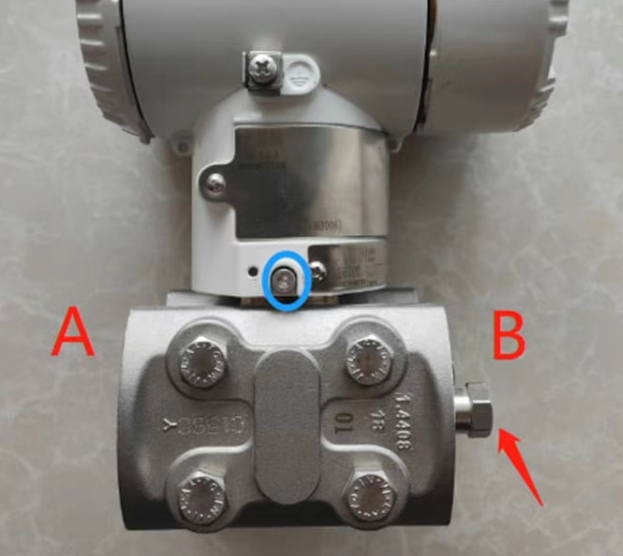 更安装⻆度时,将变送器拆下,A侧导压管(或阀组)接⼊B侧,B侧堵头挪到A侧,